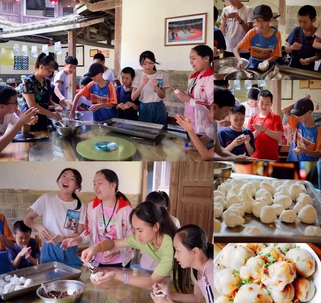 在此,我們組織孩子們進行豐富的動手體驗活動,在當?shù)厝说慕虒W下,學習打糍粑和做芋子包,切身感受當?shù)貍鹘y(tǒng)習俗,同時品嘗福建客家特色小吃。