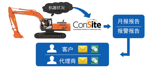 客戶將自己的機器信息綁定美鵬微信公眾號,將時時查看機器的運行情況,同時也可接受每月一次的Consite報告。